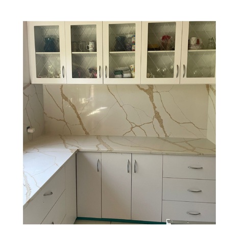 Artificial Sólido No Real Piedra Cuarzo Ingeniero Oro Blanco Venas Cocina Counter Back Splash Azulejos de pared Mesa 20MM de espesor